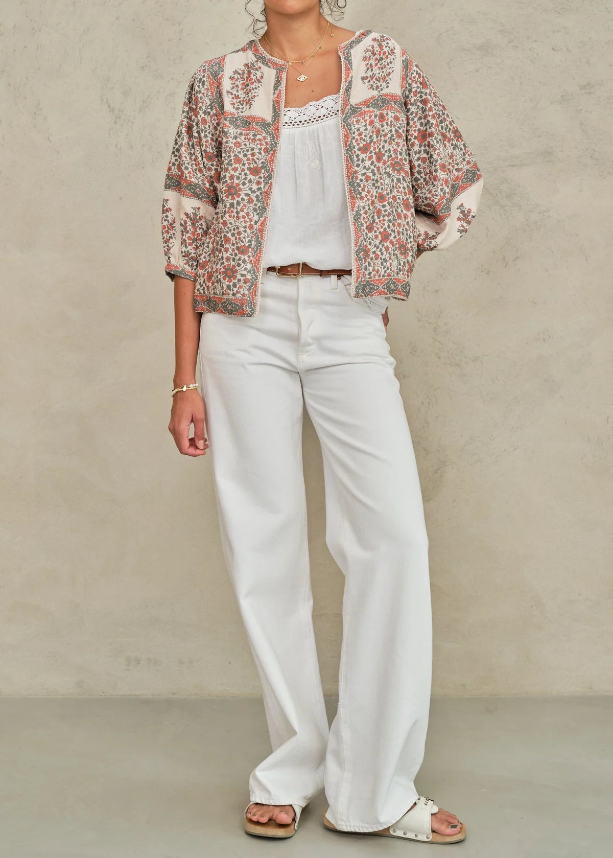 Floral Blockprint Cotton Gathered Jacket